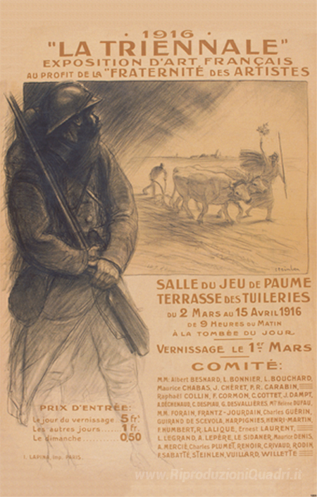 Ti offriamo una riproduzione artigianale su tela dell'opera famosa 'La Triennale' di Theophile Steinlen, dal Museo delle Riproduzioni.