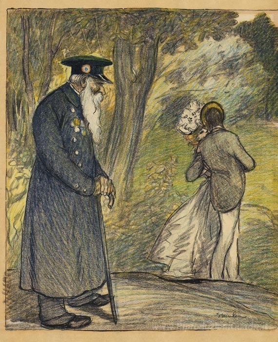Ti offriamo una riproduzione artigianale su tela dell'opera famosa 'L'Amour Au Vert' di Theophile Steinlen, dal Museo delle Riproduzioni.