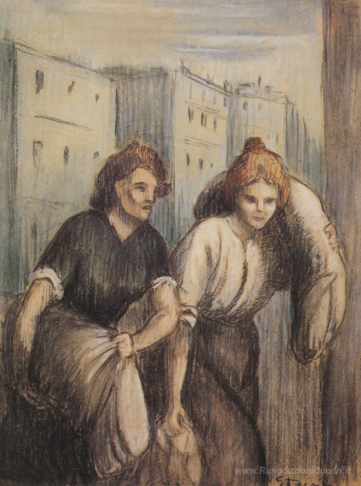 Ti offriamo una riproduzione artigianale su tela dell'opera famosa 'Lavandaie' di Theophile Steinlen, dal Museo delle Riproduzioni.