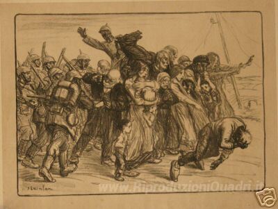 Ti offriamo una riproduzione artigianale su tela dell'opera famosa 'Le Bouclier' di Theophile Steinlen, dal Museo delle Riproduzioni.