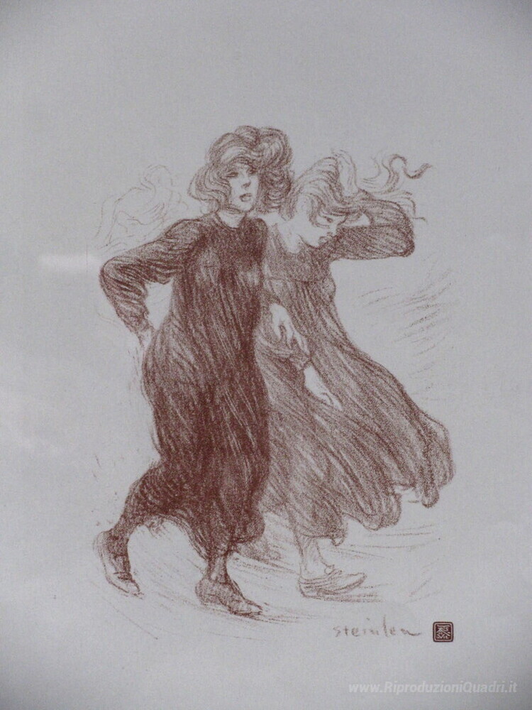 Ti offriamo una riproduzione artigianale su tela dell'opera famosa 'Le Coup de Vent' di Theophile Steinlen, dal Museo delle Riproduzioni.