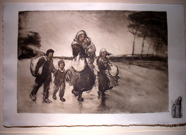Ti offriamo una riproduzione artigianale su tela dell'opera famosa 'Le Coup de Vent Vers L'Inconnu' di Theophile Steinlen, dal Museo delle Riproduzioni.