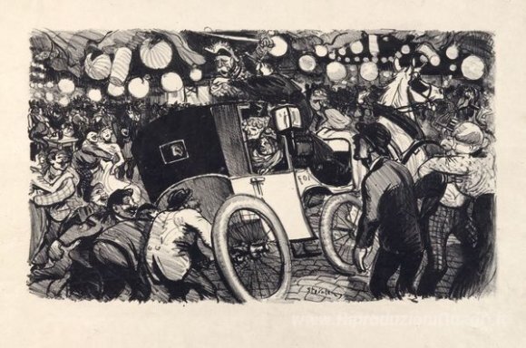 Ti offriamo una riproduzione artigianale su tela dell'opera famosa 'Le Fiacre de L'Etat' di Theophile Steinlen, dal Museo delle Riproduzioni.
