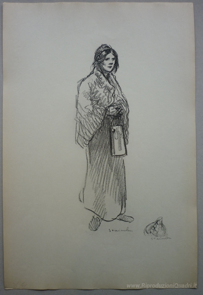 Benvenuti nella nostra collezione di dipinti a olio italiani, dove arte e passione si fondono in ogni opera. Oggi vi presentiamo Le Lait, un capolavoro di Theophile Steinlen, un artista noto per il suo stile unico che cattura la vita parigina della fine del XIX secolo. Steinlen, maestro del colore e delle luci, riesce a trasmettere emozioni profonde attraverso ogni pennellata, dando vita a scene che evocano nostalgia e una dolcezza senza tempo.