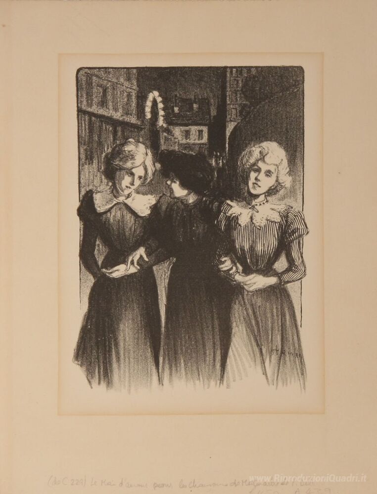 Ti offriamo una riproduzione artigianale su tela dell'opera famosa 'Le Mai d'Amour' di Theophile Steinlen, dal Museo delle Riproduzioni.
