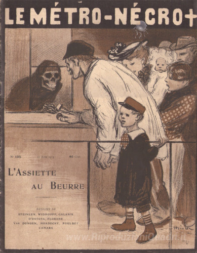 Ti offriamo una riproduzione artigianale su tela dell'opera famosa 'Le Metro Necro' di Theophile Steinlen, dal Museo delle Riproduzioni.