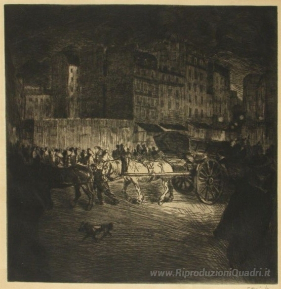 Ti offriamo una riproduzione artigianale su tela dell'opera famosa 'Le Tombereau' di Theophile Steinlen, dal Museo delle Riproduzioni.