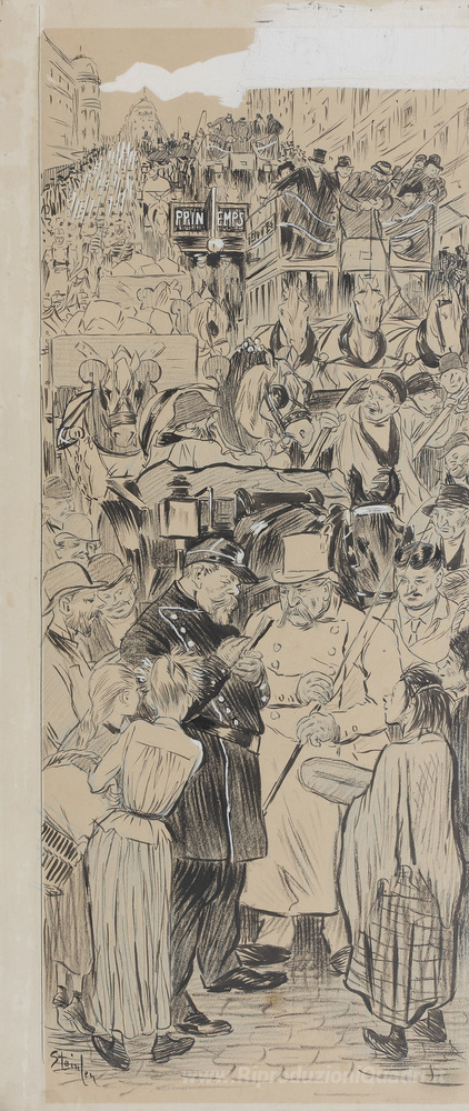 Ti offriamo una riproduzione artigianale su tela dell'opera famosa 'L'Encombrement' di Theophile Steinlen, dal Museo delle Riproduzioni.