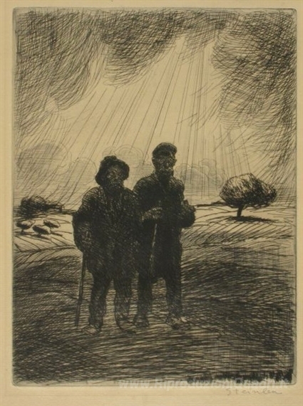 Ti offriamo una riproduzione artigianale su tela dell'opera famosa 'Les Deux Vagabonds' di Theophile Steinlen, dal Museo delle Riproduzioni.
