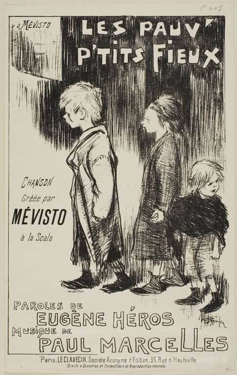 Ti offriamo una riproduzione artigianale su tela dell'opera famosa 'Les Pauv - Petits Fieux' di Theophile Steinlen, dal Museo delle Riproduzioni.