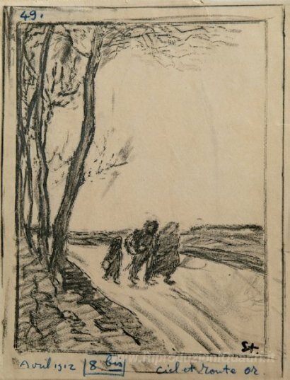 Ti offriamo una riproduzione artigianale su tela dell'opera famosa 'Les Trimardeurs' di Theophile Steinlen, dal Museo delle Riproduzioni.