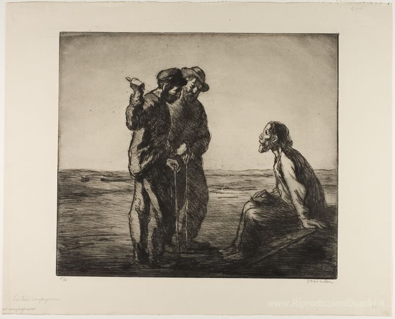 Ti offriamo una riproduzione artigianale su tela dell'opera famosa 'Les Trois Compagnons' di Theophile Steinlen, dal Museo delle Riproduzioni.
