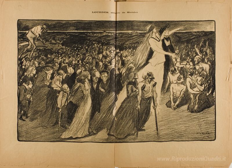 Ti offriamo una riproduzione artigianale su tela dell'opera famosa 'Lourdes' di Theophile Steinlen, dal Museo delle Riproduzioni.