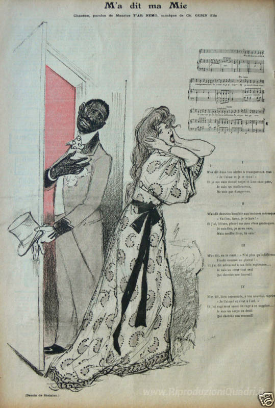 Ti offriamo una riproduzione artigianale su tela dell'opera famosa 'Ma Dit Ma Mie' di Theophile Steinlen, dal Museo delle Riproduzioni.