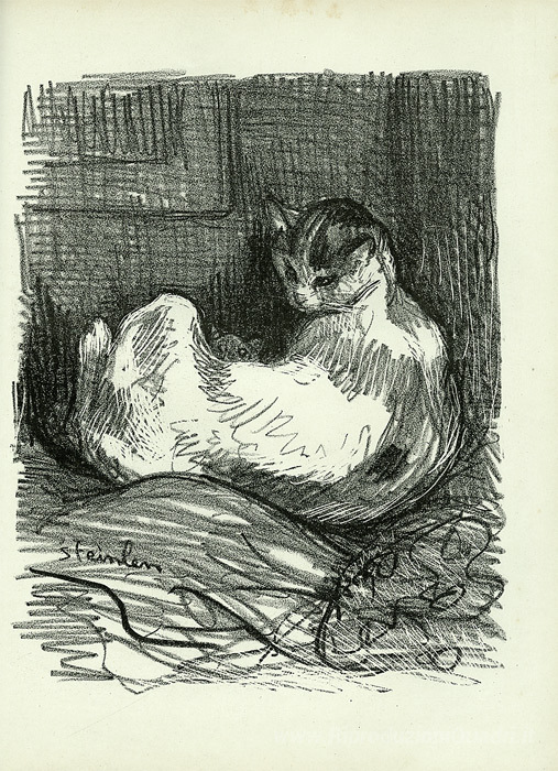 Ti offriamo una riproduzione artigianale su tela dell'opera famosa 'Madre gatto' di Theophile Steinlen, dal Museo delle Riproduzioni.