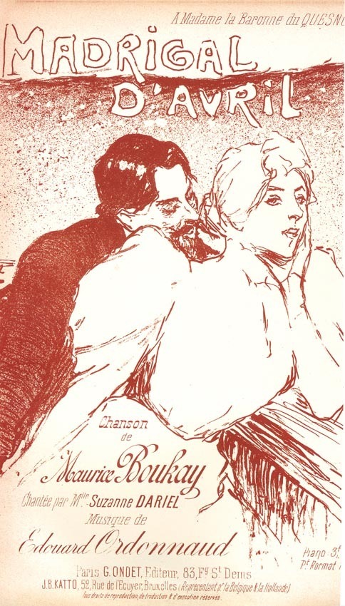 Ti offriamo una riproduzione artigianale su tela dell'opera famosa 'Madrigal D'Avril' di Theophile Steinlen, dal Museo delle Riproduzioni.