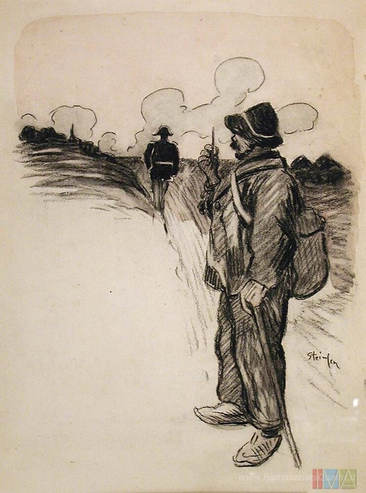 Ti offriamo una riproduzione artigianale su tela dell'opera famosa 'Marchand d'Crayon' di Theophile Steinlen, dal Museo delle Riproduzioni.