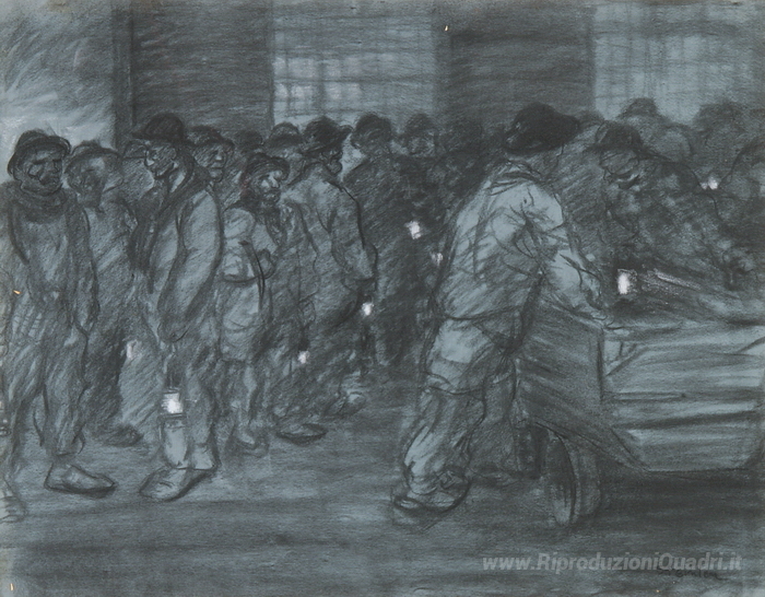 Ti offriamo una riproduzione artigianale su tela dell'opera famosa 'Minatori con lanterne' di Theophile Steinlen, dal Museo delle Riproduzioni.