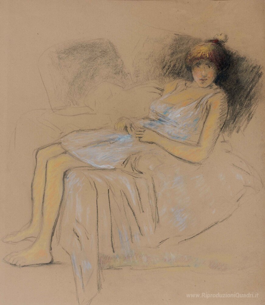 Ti offriamo una riproduzione artigianale su tela dell'opera famosa 'Modello a riposo' di Theophile Steinlen, dal Museo delle Riproduzioni.