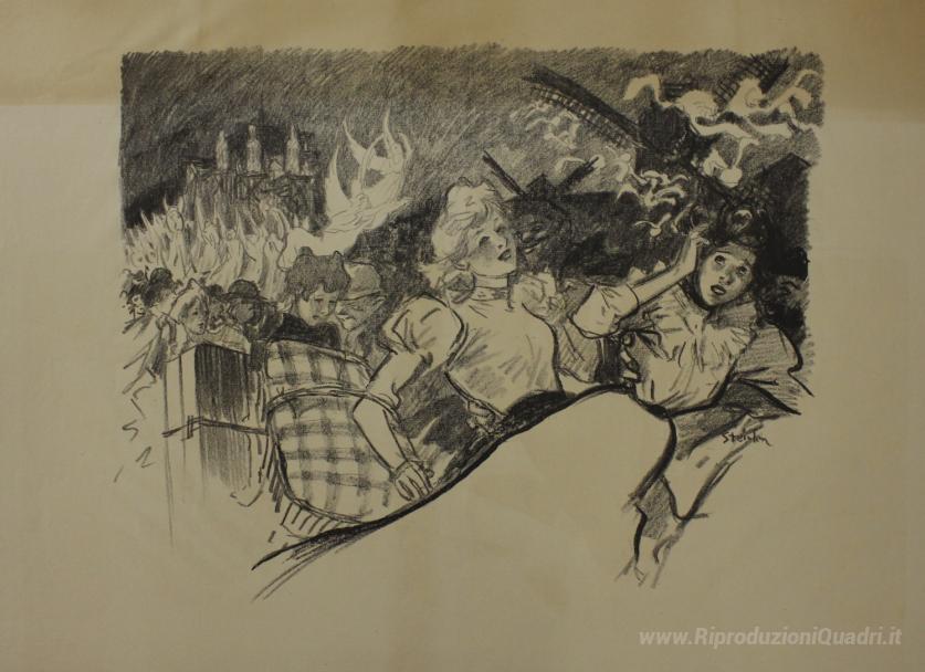 Ti offriamo una riproduzione artigianale su tela dell'opera famosa 'Montmartre' di Theophile Steinlen, dal Museo delle Riproduzioni.