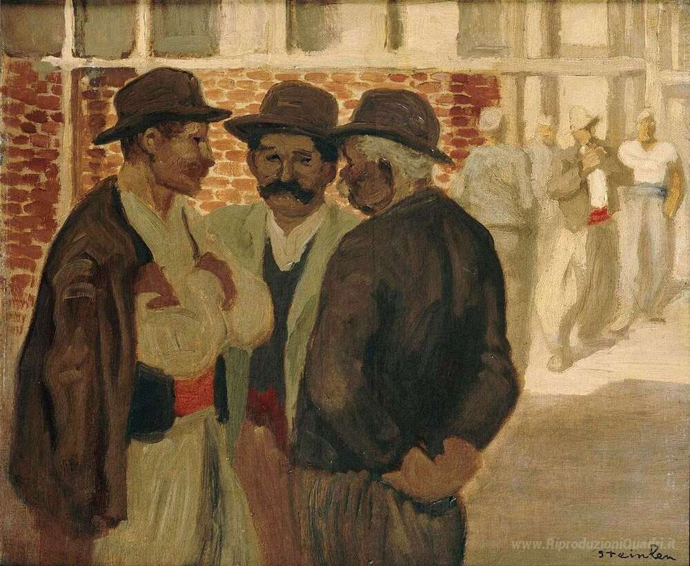 Ti offriamo una riproduzione artigianale su tela dell'opera famosa 'Muratori' di Theophile Steinlen, dal Museo delle Riproduzioni.