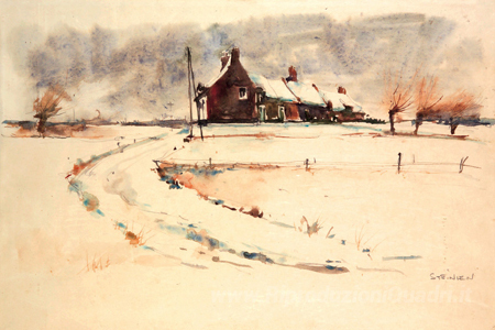 Benvenuti nella nostra selezione di dipinti a olio italiani, dove ogni opera racconta una storia unica e affascinante. Oggi, vi presentiamo l'incantevole Neve paesaggio, un capolavoro del celebre artista Theophile Steinlen. Con la sua bravura nel catturare la bellezza della natura, Steinlen trasmette una sensazione di tranquillità e meraviglia in questo paesaggio innevato, evocando emozioni che elevano ogni ambiente.