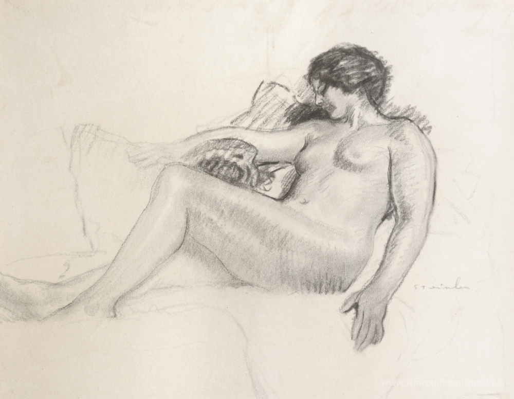 Ti offriamo una riproduzione artigianale su tela dell'opera famosa 'Nu Allonge' di Theophile Steinlen, dal Museo delle Riproduzioni.