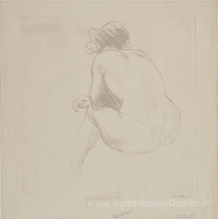 Ti offriamo una riproduzione artigianale su tela dell'opera famosa 'Nuda da dietro' di Theophile Steinlen, dal Museo delle Riproduzioni.