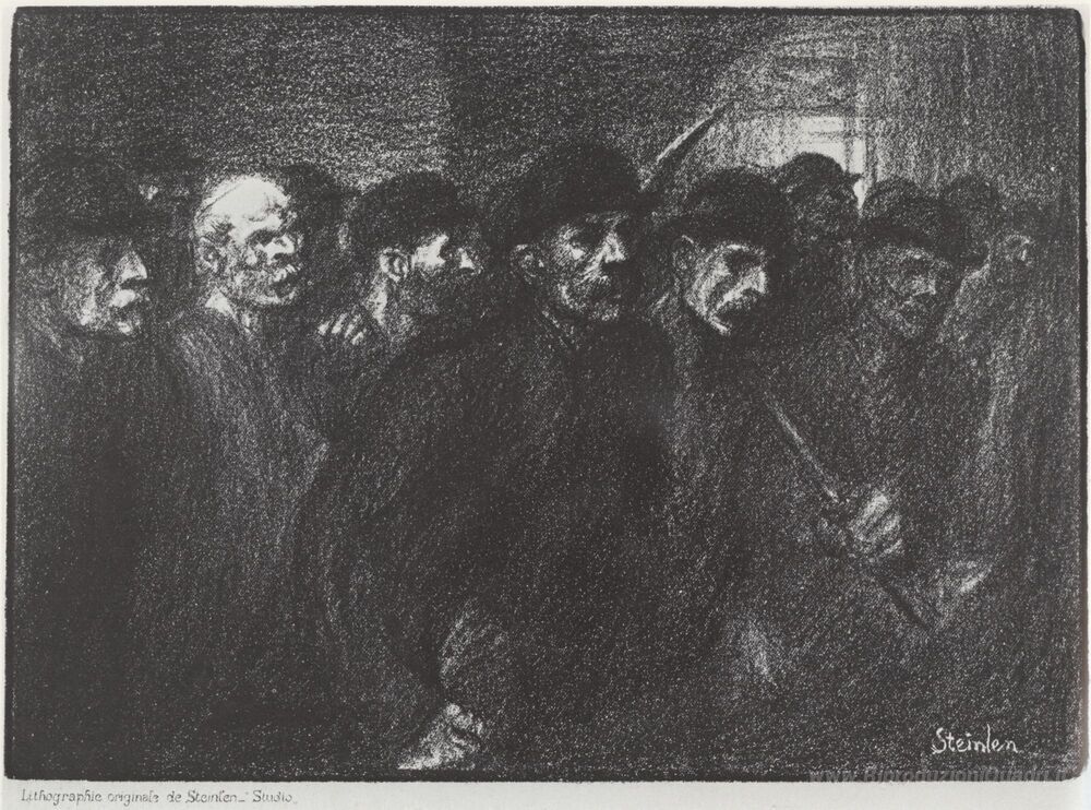 Ti offriamo una riproduzione artigianale su tela dell'opera famosa 'Ouvriers Sortant de L'Usine' di Theophile Steinlen, dal Museo delle Riproduzioni.