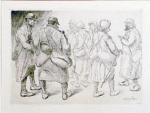 Ti offriamo una riproduzione artigianale su tela dell'opera famosa 'Permissionaires No-2' di Theophile Steinlen, dal Museo delle Riproduzioni.