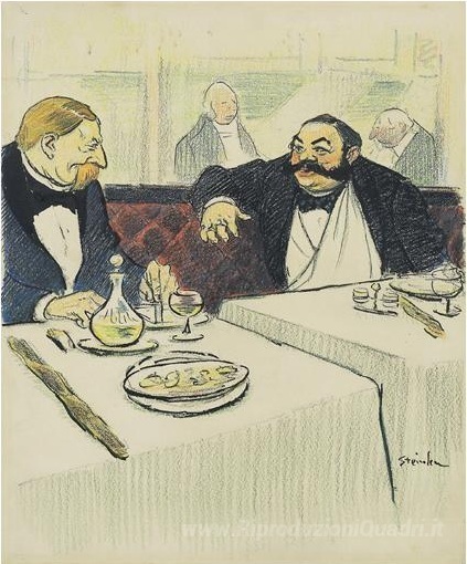 Ti offriamo una riproduzione artigianale su tela dell'opera famosa 'Philanthropie' di Theophile Steinlen, dal Museo delle Riproduzioni.