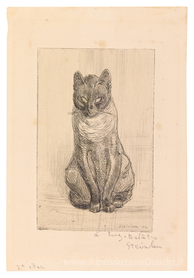 Ti offriamo una riproduzione artigianale su tela dell'opera famosa 'Piccolo Gatto Seduto' di Theophile Steinlen, dal Museo delle Riproduzioni.