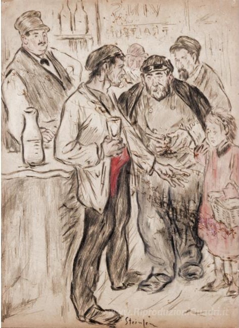 Scoprite l'incantevole opera Pus D’Patroni, un capolavoro realizzato dal celebre artista francese Theophile Steinlen. La sua indiscutibile abilità nell’uso della pittura a olio cattura l'essenza della vita quotidiana, invitando lo spettatore a immergersi in un’atmosfera vibrante e nostalgica. Steinlen, noto per il suo stile evocativo e le sue raffinate composizioni, utilizza colori ricchi, luci soffuse e dettagli vividi che trasformano ogni dipinto in una narrazione visiva unica.