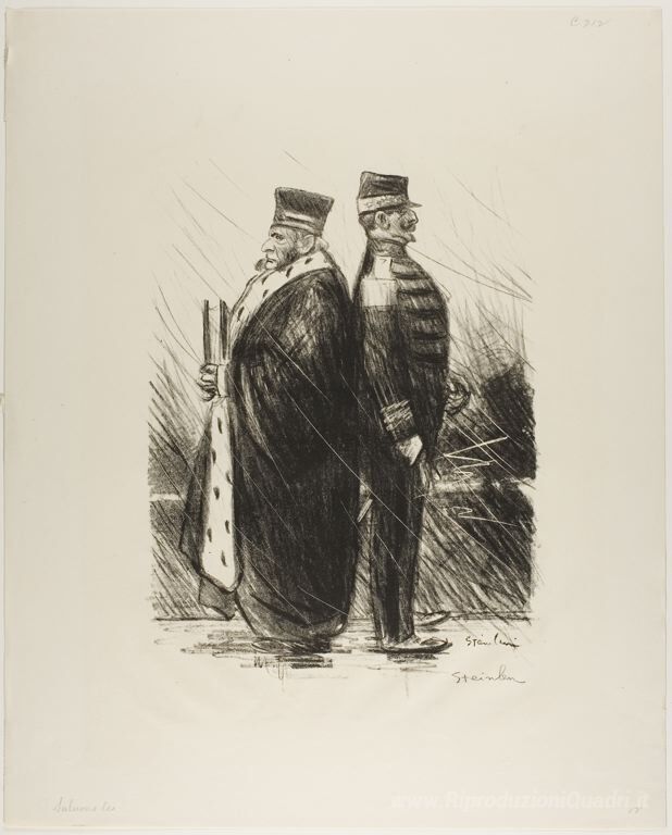 Immergetevi nell'affascinante mondo dell'arte italiana con il capolavoro Saluons Les di Theophile Steinlen, un'opera che cattura l'essenza dell'intimità e della convivialità. Steinlen, noto per il suo stile unico e la sua abilità nel ritrarre momenti di vita quotidiana, riesce a trasformare soggetti semplici in straordinarie espressioni visive, utilizzando una palette cromatica calda e avvolgente.