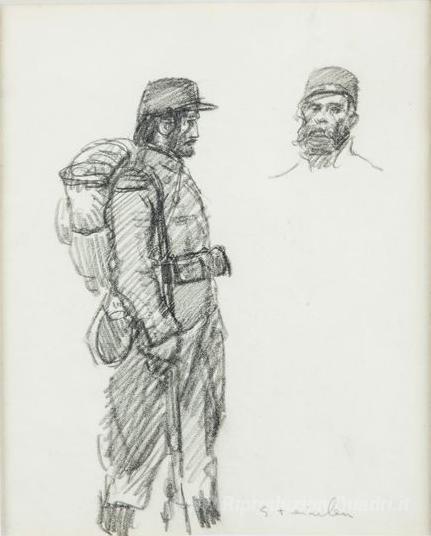 Ti offriamo una riproduzione artigianale su tela dell'opera famosa 'Soldati' di Theophile Steinlen, dal Museo delle Riproduzioni.