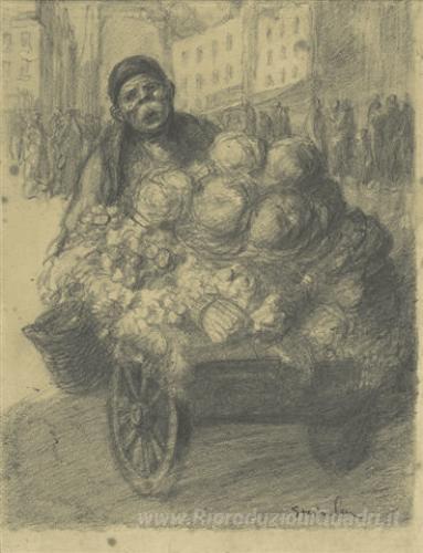 Ti offriamo una riproduzione artigianale su tela dell'opera famosa 'Steet fornitore' di Theophile Steinlen, dal Museo delle Riproduzioni.
