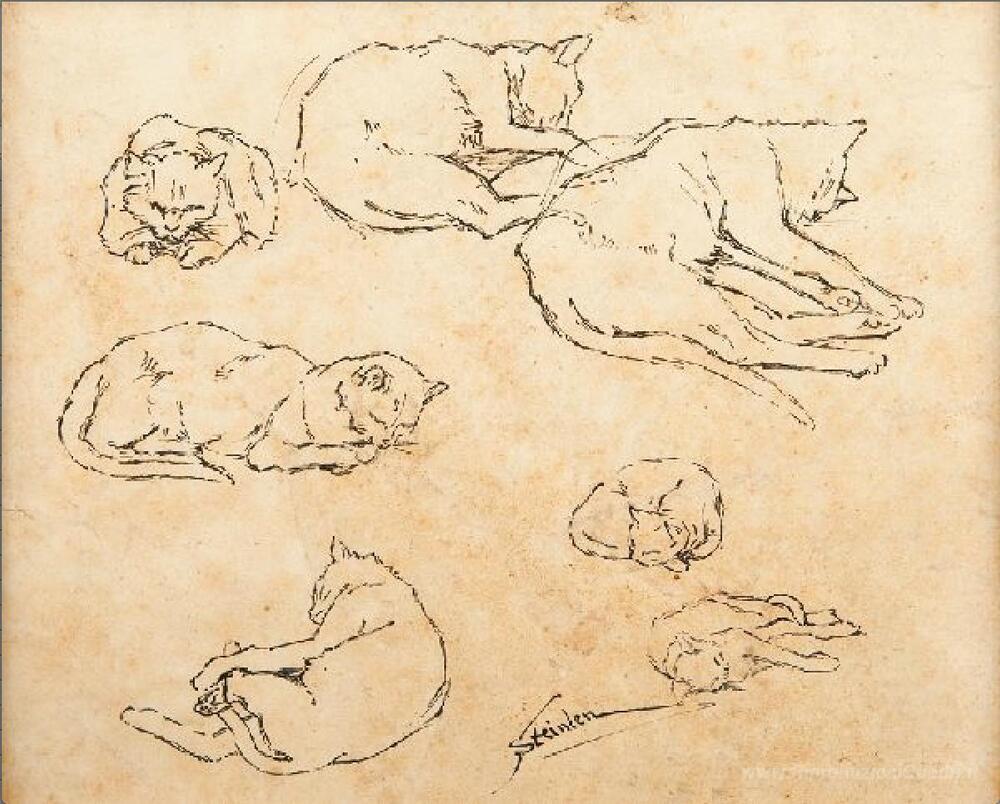 Scoprite l'incanto del dipinto a olio Studio di gatti dell'illustre artista Theophile Steinlen, un'opera che racchiude la grazia e l'eleganza del mondo felino. Steinlen, noto per il suo approccio poetico e realista, ha saputo catturare l'essenza della vita quotidiana parigina attraverso le sue opere. Il suo stile, caratterizzato da linee morbide e colori vibranti, riesce a evocare emozioni profonde, trasportando l'osservatore in un'atmosfera di calda intimità.