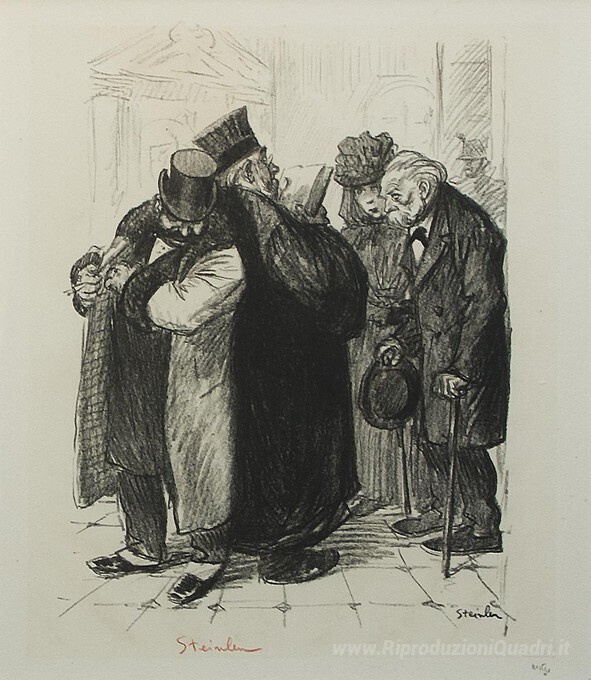 Ti offriamo una riproduzione artigianale su tela dell'opera famosa 'Su Detrousse Au Coin Des Lois' di Theophile Steinlen, dal Museo delle Riproduzioni.