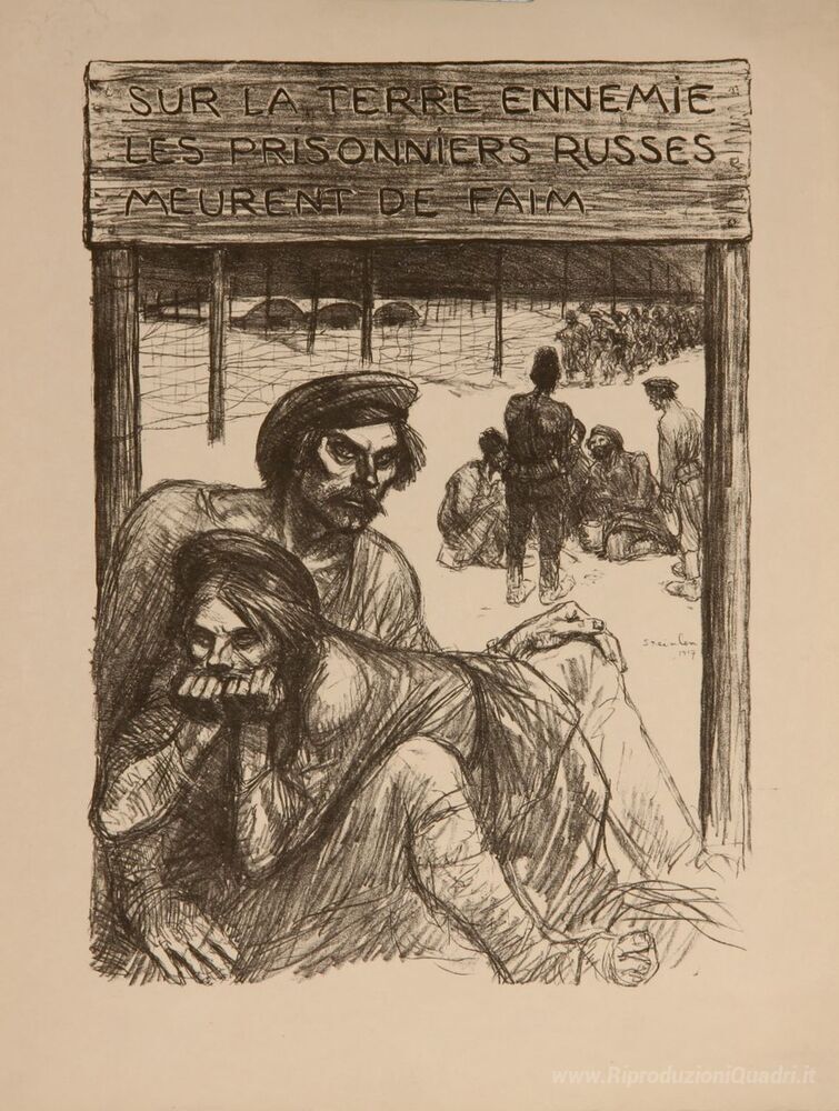 Ti offriamo una riproduzione artigianale su tela dell'opera famosa 'Sul terreno nemico - prigionieri russi affama la fame' di Theophile Steinlen, dal Museo delle Riproduzioni.