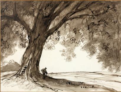 Ti offriamo una riproduzione artigianale su tela dell'opera famosa 'Vagabond sotto l'albero' di Theophile Steinlen, dal Museo delle Riproduzioni.