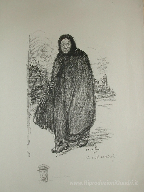 Ti offriamo una riproduzione artigianale su tela dell'opera famosa 'Vecchia donna' di Theophile Steinlen, dal Museo delle Riproduzioni.