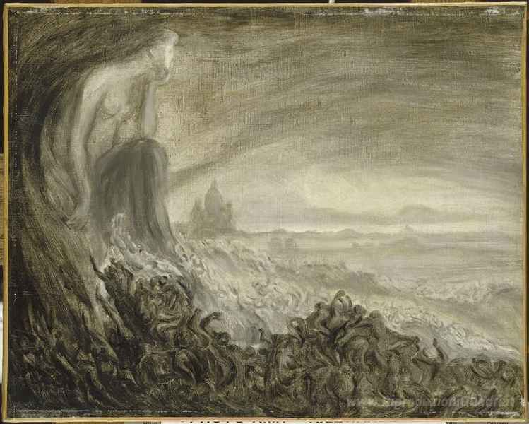 Ti offriamo una riproduzione artigianale su tela dell'opera famosa 'Vision de Paris' di Theophile Steinlen, dal Museo delle Riproduzioni.
