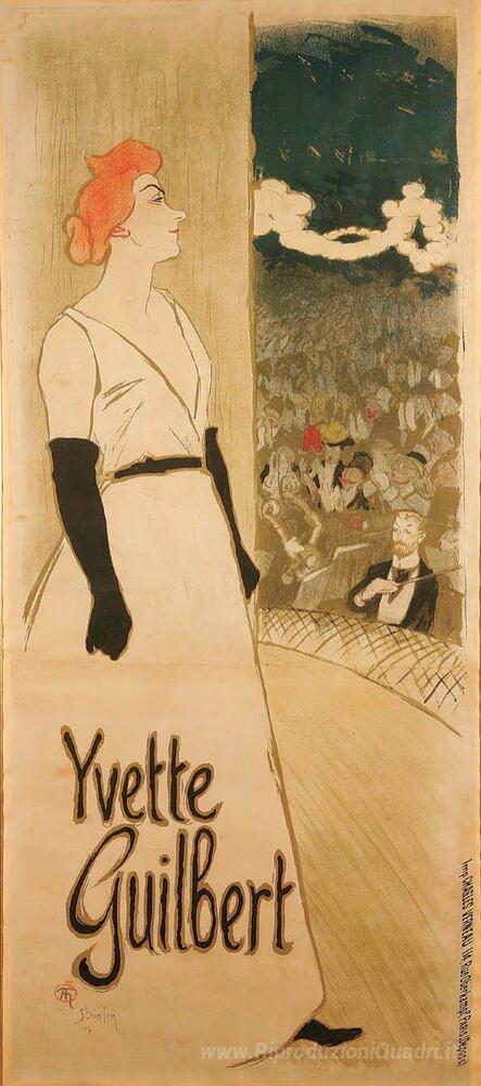 Ti offriamo una riproduzione artigianale su tela dell'opera famosa 'Yvette Guilbert' di Theophile Steinlen, dal Museo delle Riproduzioni.