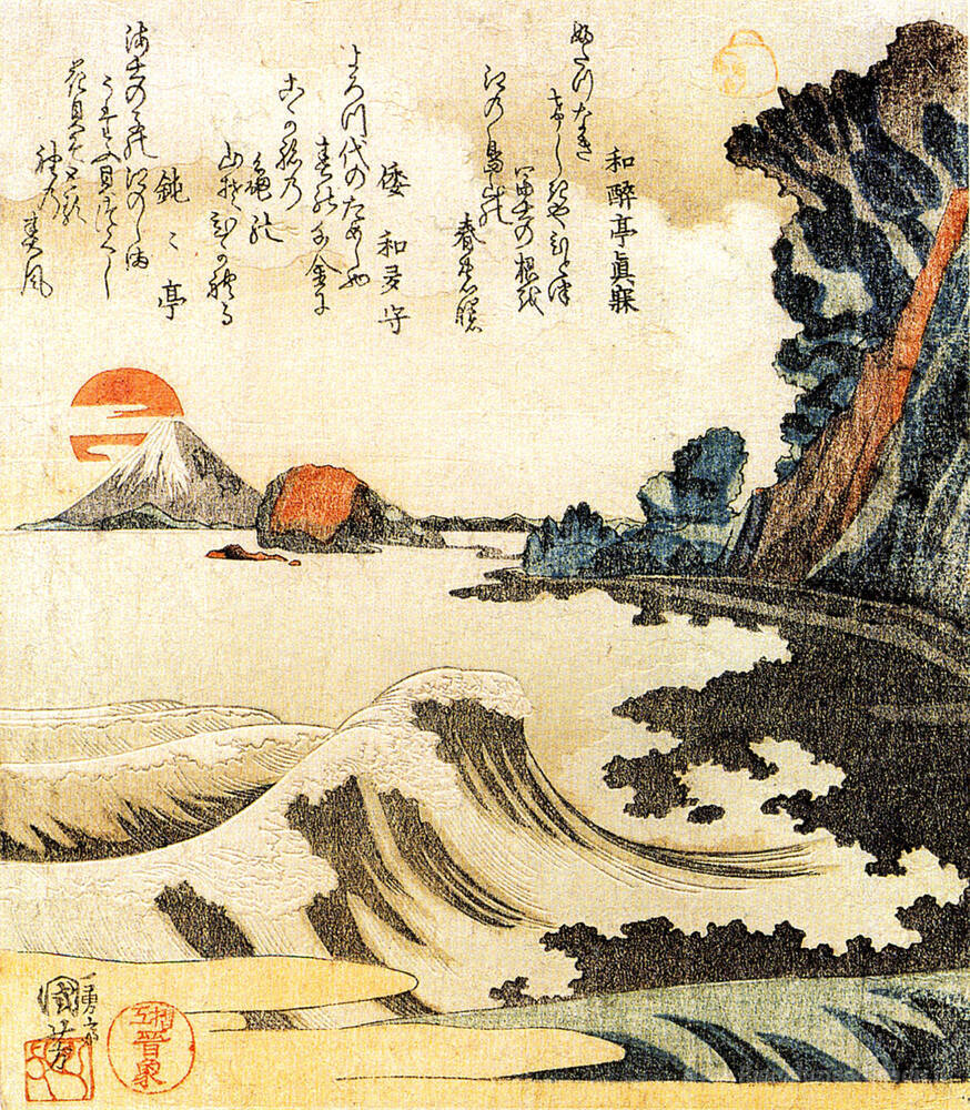 Ti offriamo una riproduzione artigianale su tela dell'opera famosa 'Vista del Monte Fuji' di Utagawa Kuniyoshi, dal Museo delle Riproduzioni.