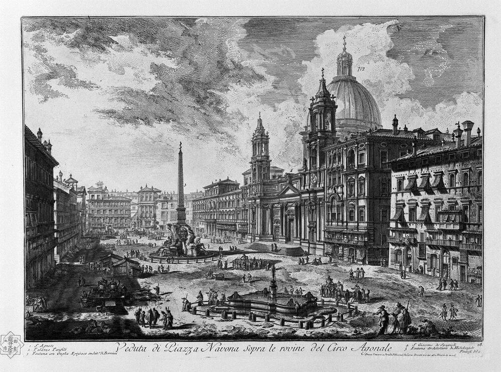 Ti offriamo una riproduzione artigianale su tela dell'opera famosa 'Veduta della Piazza della Rotonda' di Giovanni Battista Piranesi, dal Museo delle Riproduzioni.