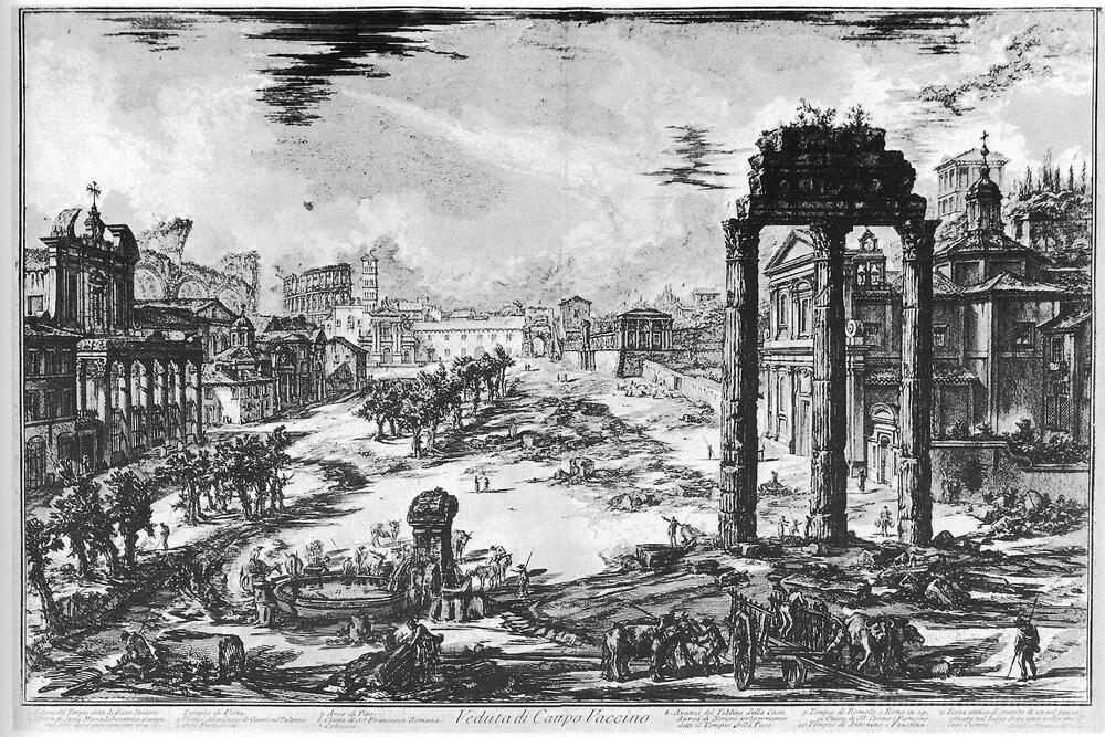 Ti offriamo una riproduzione artigianale su tela dell'opera famosa 'Vedute di Roma' di Giovanni Battista Piranesi, dal Museo delle Riproduzioni.