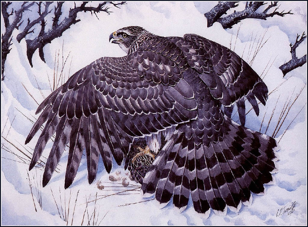 Ti offriamo una riproduzione artigianale su tela dell'opera famosa 'Astore' di Charles Tunnicliffe, dal Museo delle Riproduzioni.