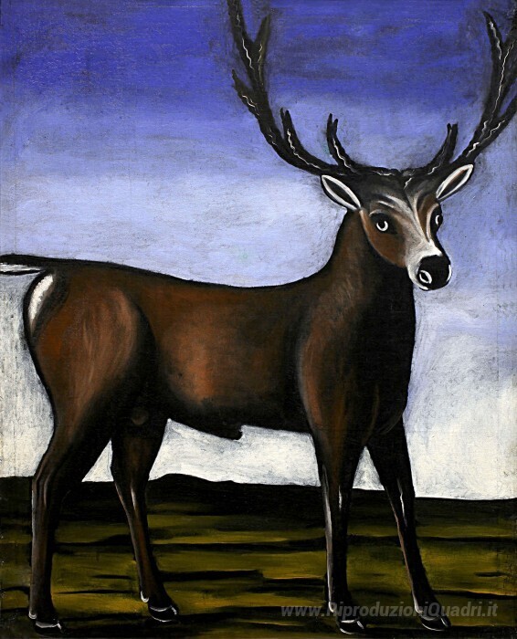 Ti offriamo una riproduzione artigianale su tela dell'opera famosa 'Cervo' di Niko Pirosmani, dal Museo delle Riproduzioni.