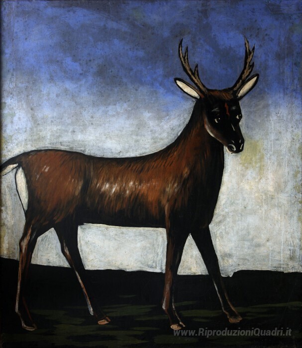 Ti offriamo una riproduzione artigianale su tela dell'opera famosa 'Cervo' di Niko Pirosmani, dal Museo delle Riproduzioni.