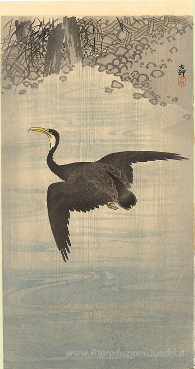Ti offriamo una riproduzione artigianale su tela dell'opera famosa 'Cormorano' di Ohara Koson, dal Museo delle Riproduzioni.